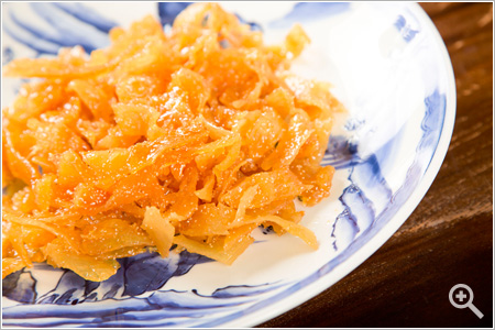 厳選したするめいかを特性のたれに一晩寝かせ、こだわりの製法で甘口に炊きあげました。お茶受けに最適の逸品でございます。